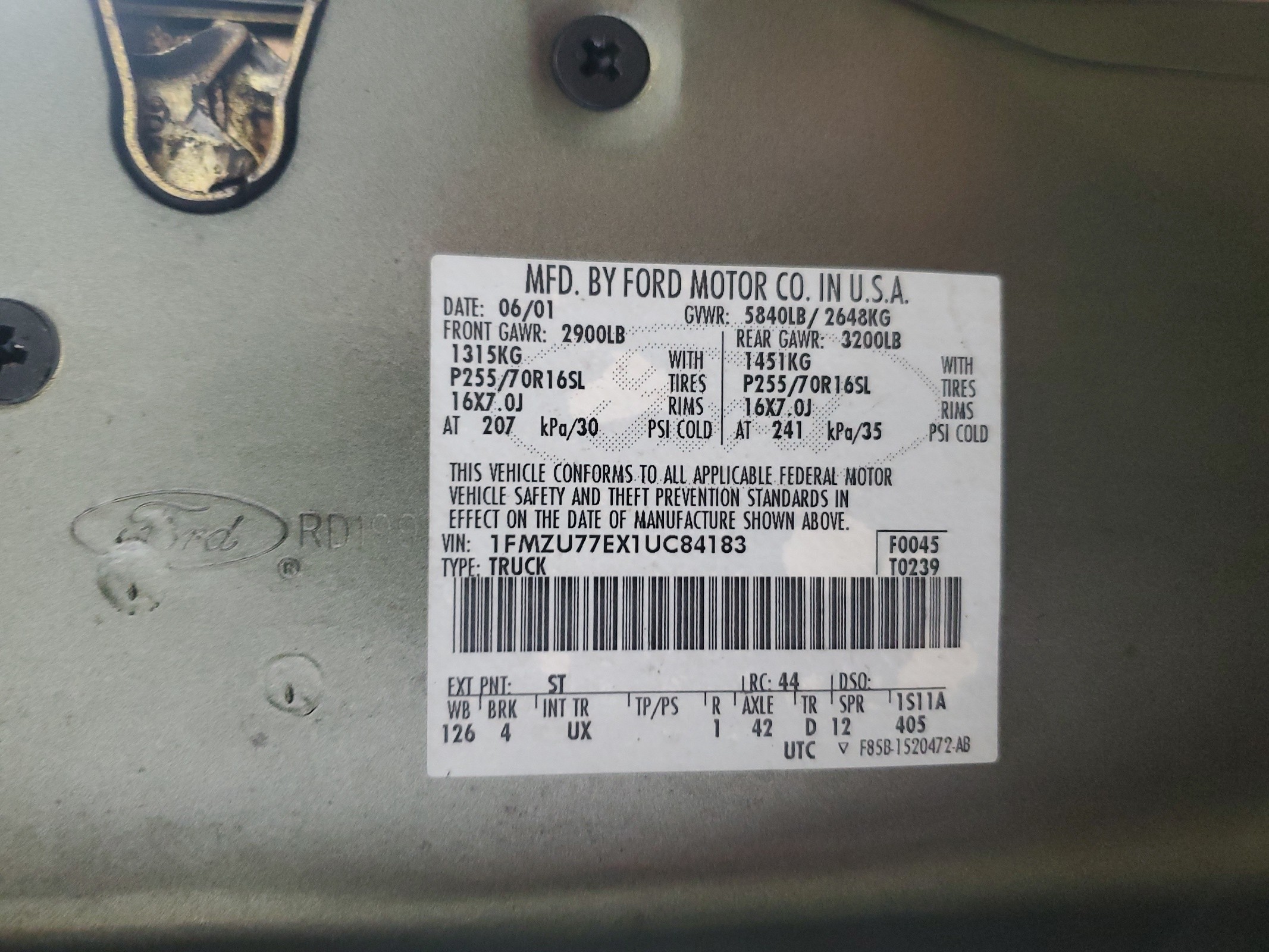 VIN: 1FMZU77EX1UC84183