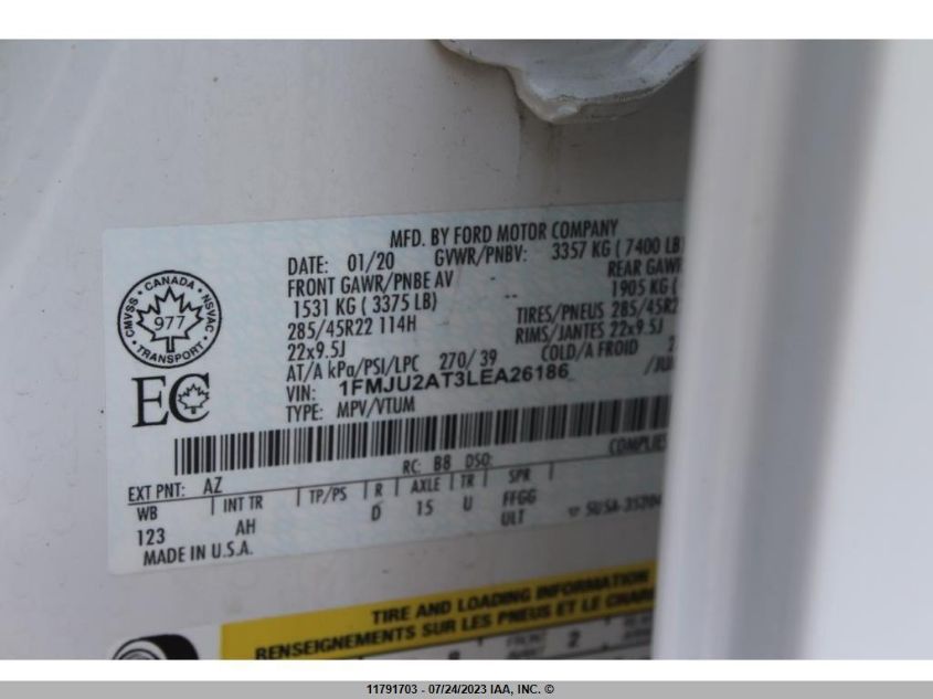 1FMJU2AT3LEA26186 2020 Ford Expedition Limited