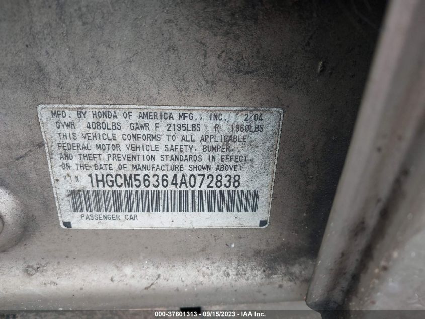 1HGCM56364A072838 2004 Honda Accord Sdn Lx