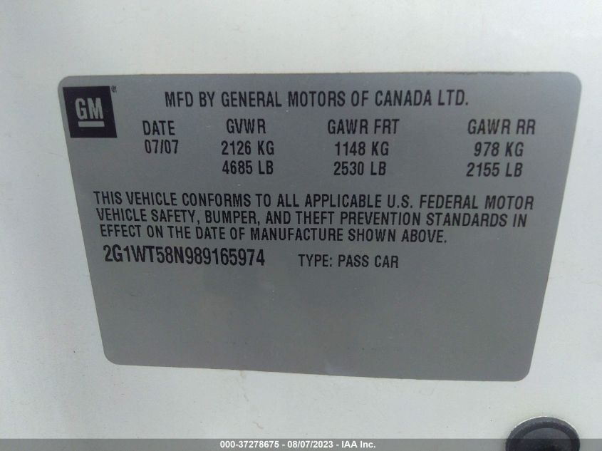 2G1WT58N989165974 2008 Chevrolet Impala Lt