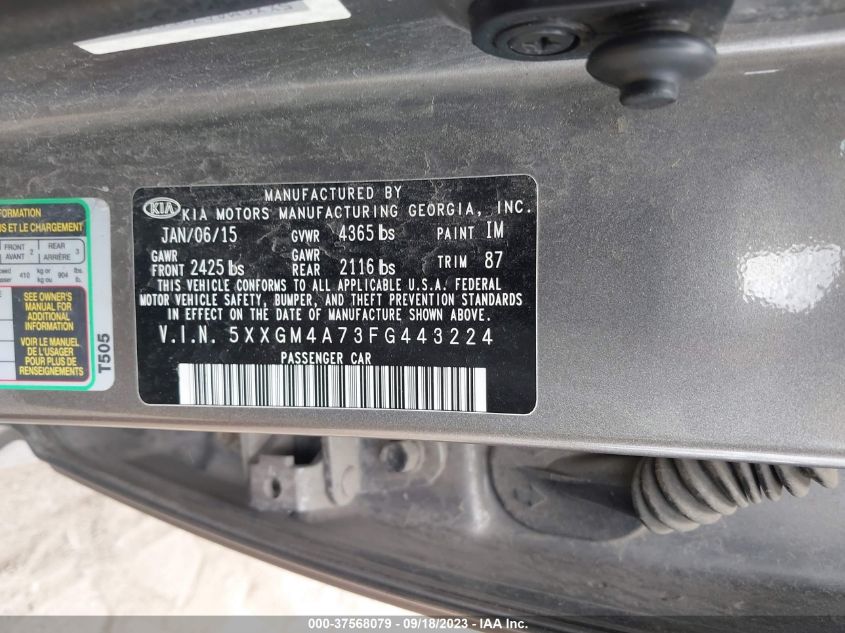 5XXGM4A73FG443224 2015 Kia Optima Lx