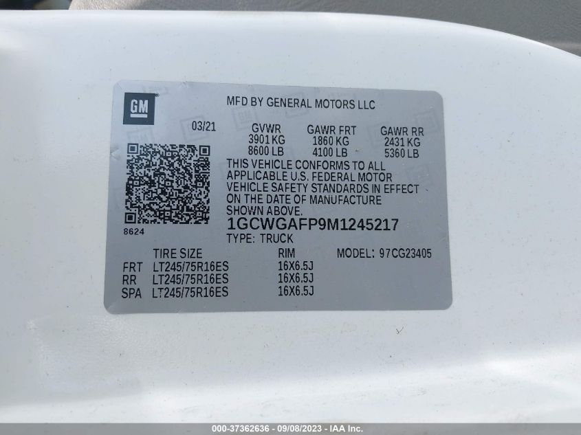 1GCWGAFP9M1245217 2021 Chevrolet Express Cargo Van