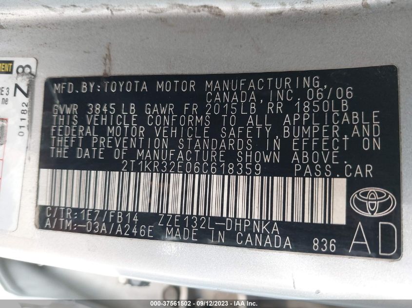2T1KR32E06C618359 2006 Toyota Matrix Std/Xr