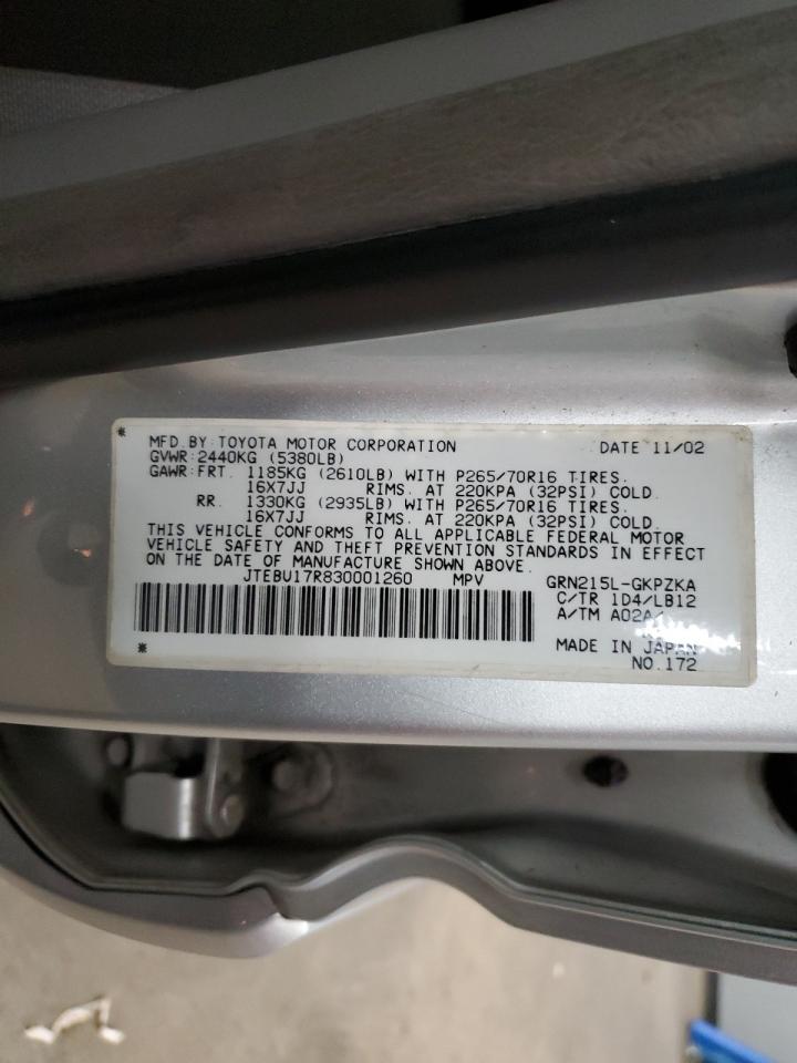 JTEBU17R830001260 2003 Toyota 4Runner Limited